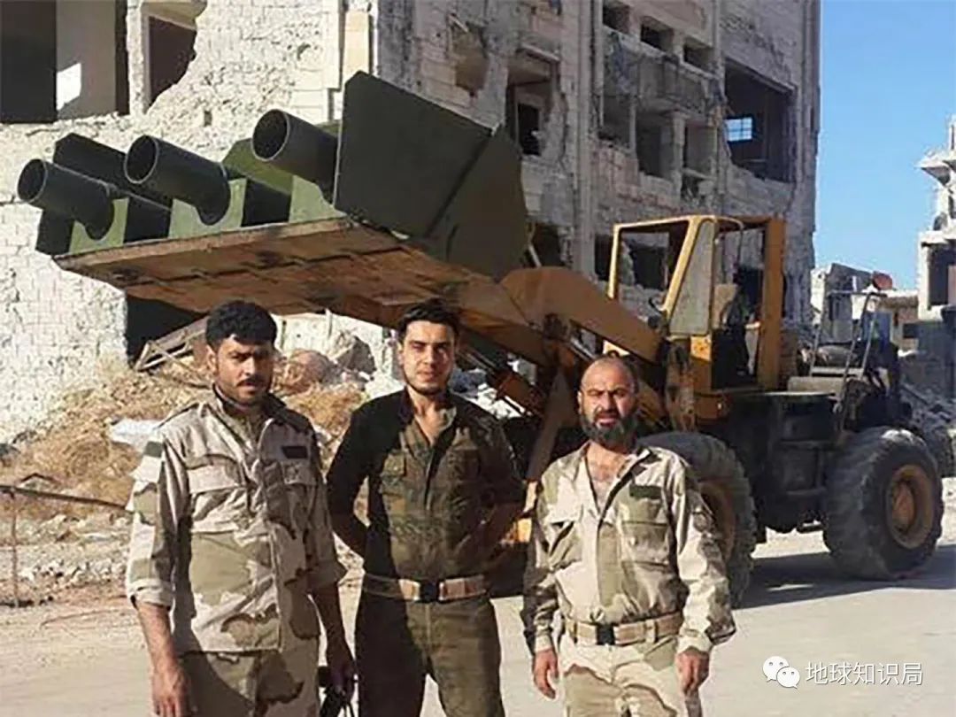 如果嫌棄單發模式不過癮,這種由裝載機改造而成的“火山榴彈炮”肯定會讓你滿意。去掉裝載機前鬥,轉而用四個鋼管代替的“四聯裝煤氣罐大炮”,既保證了裝備的機動性和強大的破壞力,也在一定程度上保護了發射者的安全,堪稱中東特供版高達。