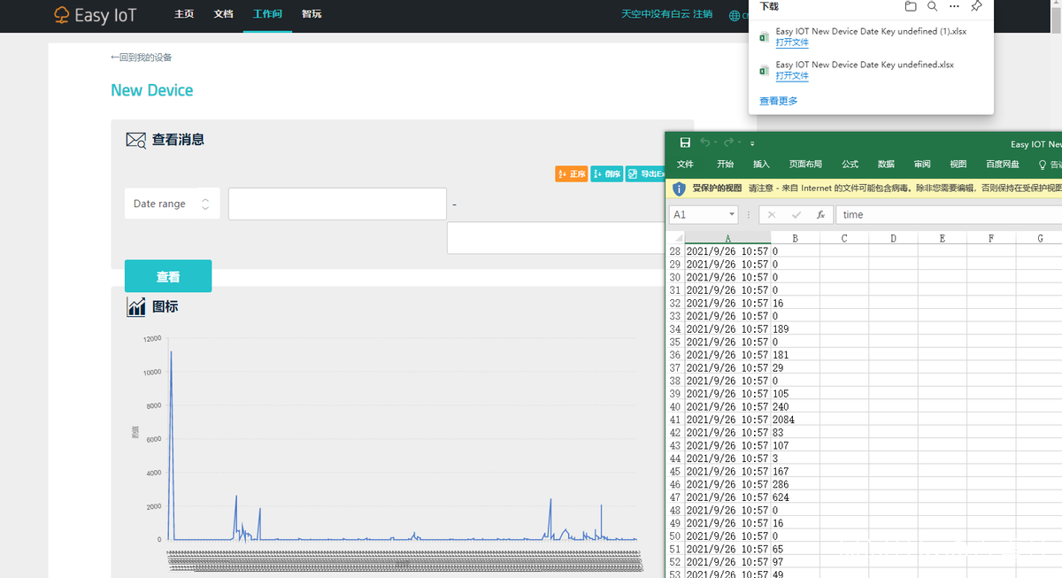 通過時間與噪音數據分析,可以瞭解噪音產生的時段,分析產生噪音的原因,進行噪音危害防範。在Easy Iot平台上還支持Excel表格導出,方便作為後續的數據分析的數據源。