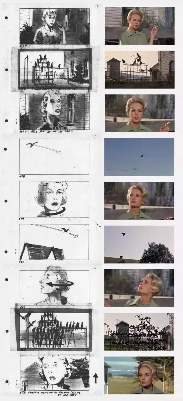 希區柯克經常用細緻的圖卡來修飾他的視像,同是還能控制拍攝流程,他經常會説他的電影還在沒拍之前就已經(畫)完成了。