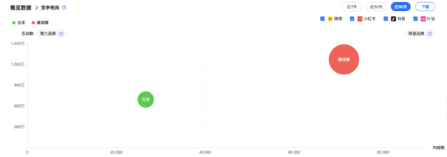 而“不買”、“拒絕”等負面詞語也出現在了品牌標籤中,這些大多來自於網友的抵制,激烈的話題爭議讓玉澤的討論聲勢攀升,熱度超過品牌近幾個月內的事件傳播水平。