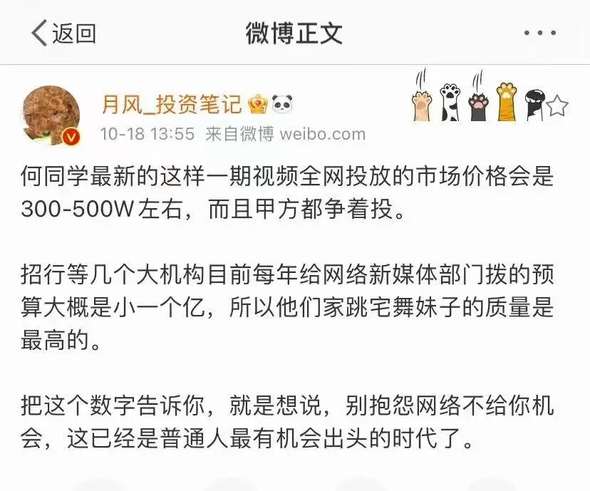 19年,他粉絲突破10萬。他當時透露,做視頻的收入來源有兩方面: