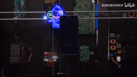 手機放到桌子上面充電的時候,透明屏幕上的小貓無縫穿進了手機裏面;