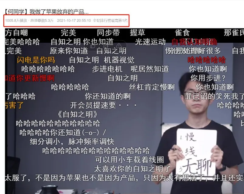 我早上再到B站瞄了一眼,發現這個視頻已經有1005萬播放,播放量曾經霸榜第1。