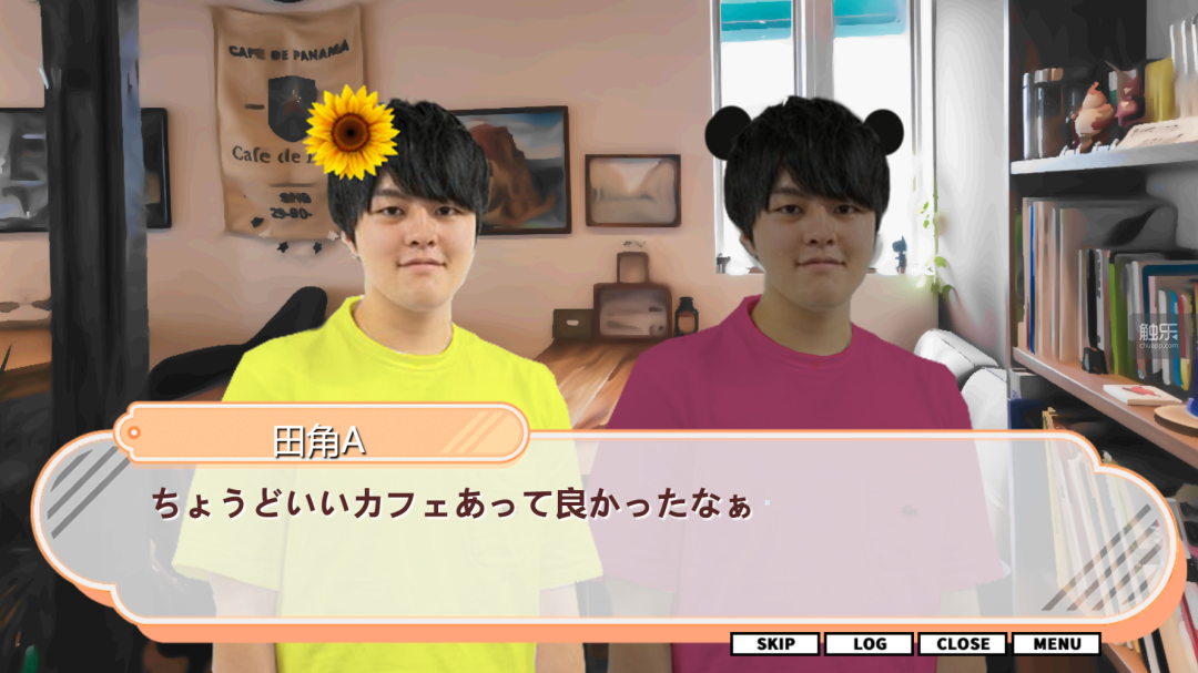 當然,如果你不想在故事中受到主播們固有印象的影響,也可以更換模式,讓所有的角色都是同一張臉。結果當我點進去才發現,每個角色都變成了彩虹社所在公司ANYCOLOR的社長田角陸的樣子!雖然田角社長一直以來都在觀眾面前展現出他幽默和善的一面,不過敢在遊戲裏這樣“玩弄”自己公司的老闆,不得不佩服果然還是隻有委員長能做出來這樣的事情。