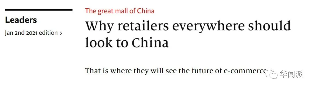 “過去10個月,富裕國家的大多數人都參與了50年來西方最大的購物革命。新冠疫情導致網上消費激增,從實體店消費轉向網購的速度加快了5年左右。”然而,文章認為:“電子商務的未來在中國,而不是西方。”