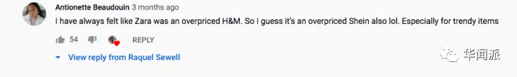 在YouTube上,倫敦姑娘拉克爾·希維爾(Raquel Sewell)正在把SHEIN的衣服與Zara的衣服進行對比。這段視頻在YouTube上獲得了超過13萬的點擊量。