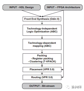 下圖是一個 開源的FPGA的設計流程(OpenFPGA),我們可以看看,即使一個開源項目,其涉及到的EDA工具最少都要有哪些?