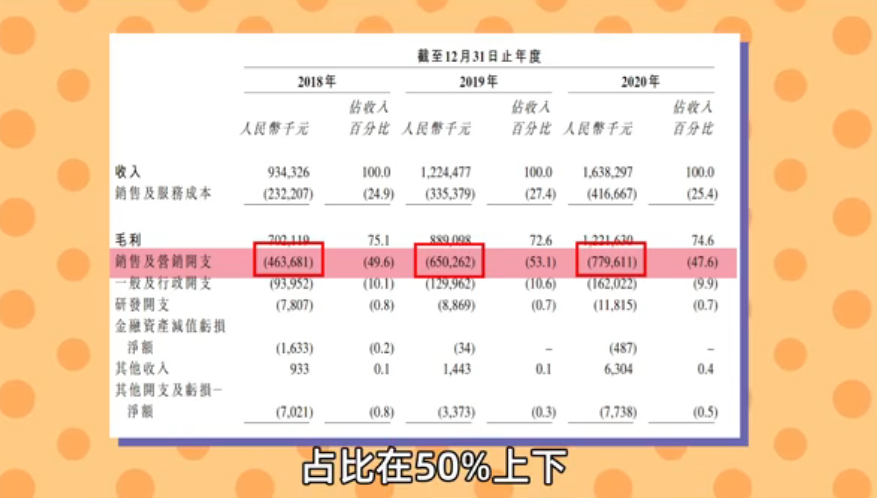 以雍禾醫療為例,其2020年收入16.38億,銷售及服務成本,也就是員工工資、醫療設備、手術耗材等等,一共支出4.17億,佔收入的25.4%,毛利高達74.6%。