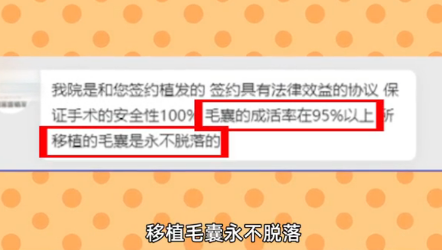 眾所周知很多植髮機構都會在術前協議擔保“成活率95%以上,移植毛囊永不脱落。”但一個bug在於根本沒有第三方能夠鑑定這個成活率,所以這個擔保簽了也相當於白籤。