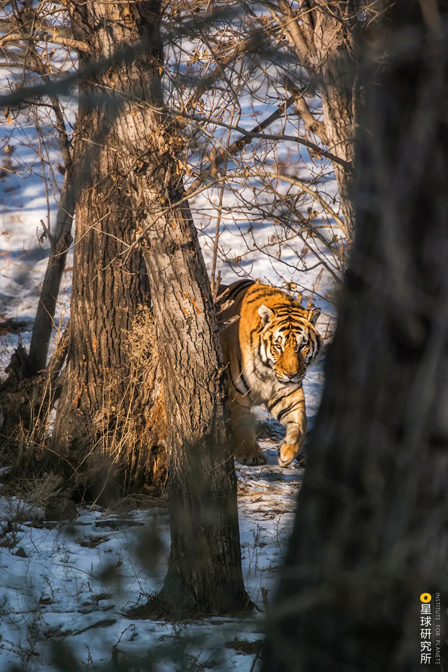 (在東北虎保護基地的林子裏的東北虎,東北虎國家公園,攝影師@雷雨)