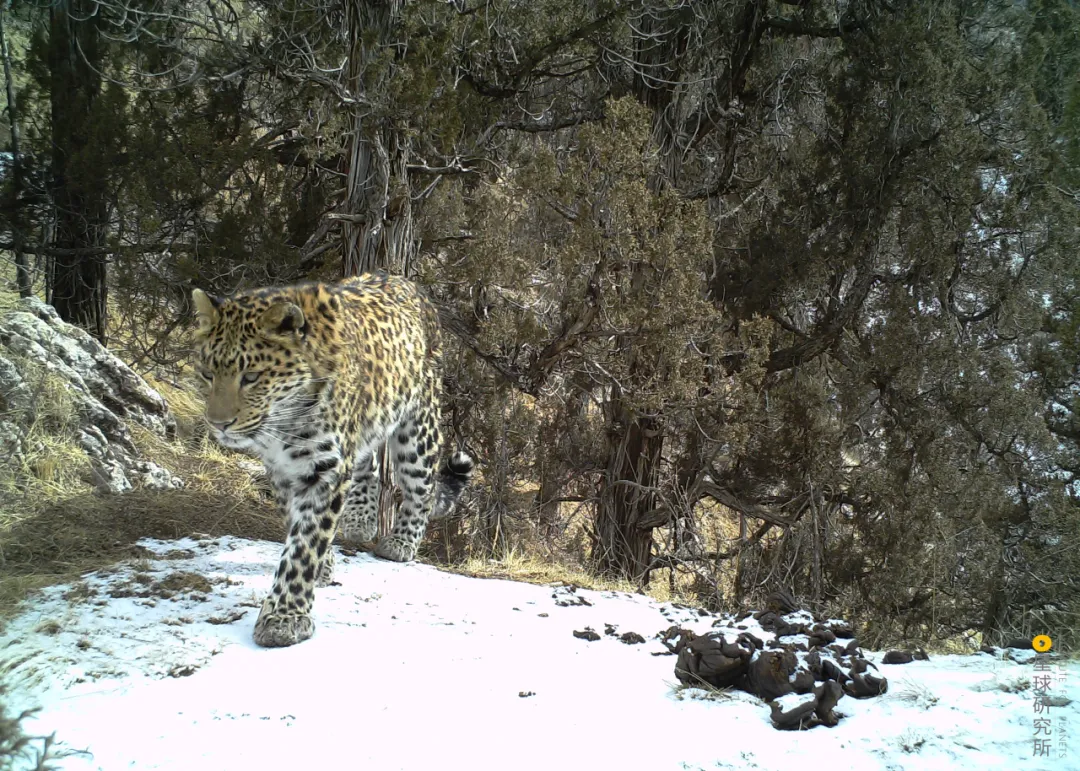 (在青海昂賽的一處山脊,紅外相機拍到雪豹和豹先後出現在同一地點,圖片來源@山水自然保護中心)