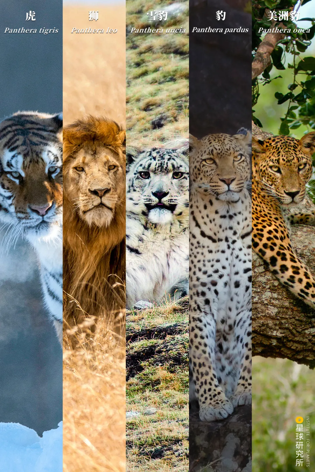 (豹屬“五虎將”,圖片來源@謝建國/自然影像中國、李佳、視覺中國、賈紀謙、視覺中國)