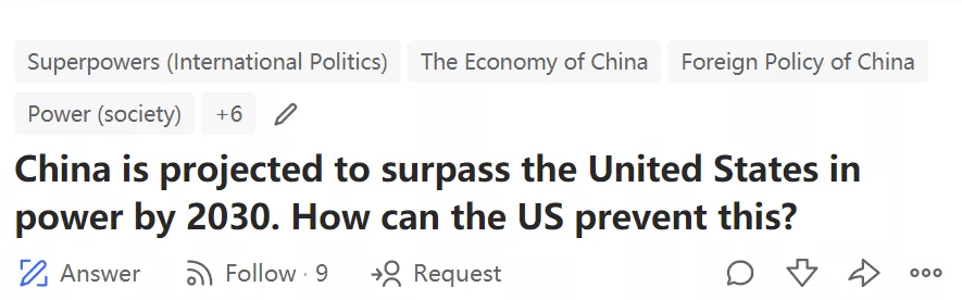 外網有一個話題:預計到2030年,中國的實力將超過美國。美國如何能防止這種情況?