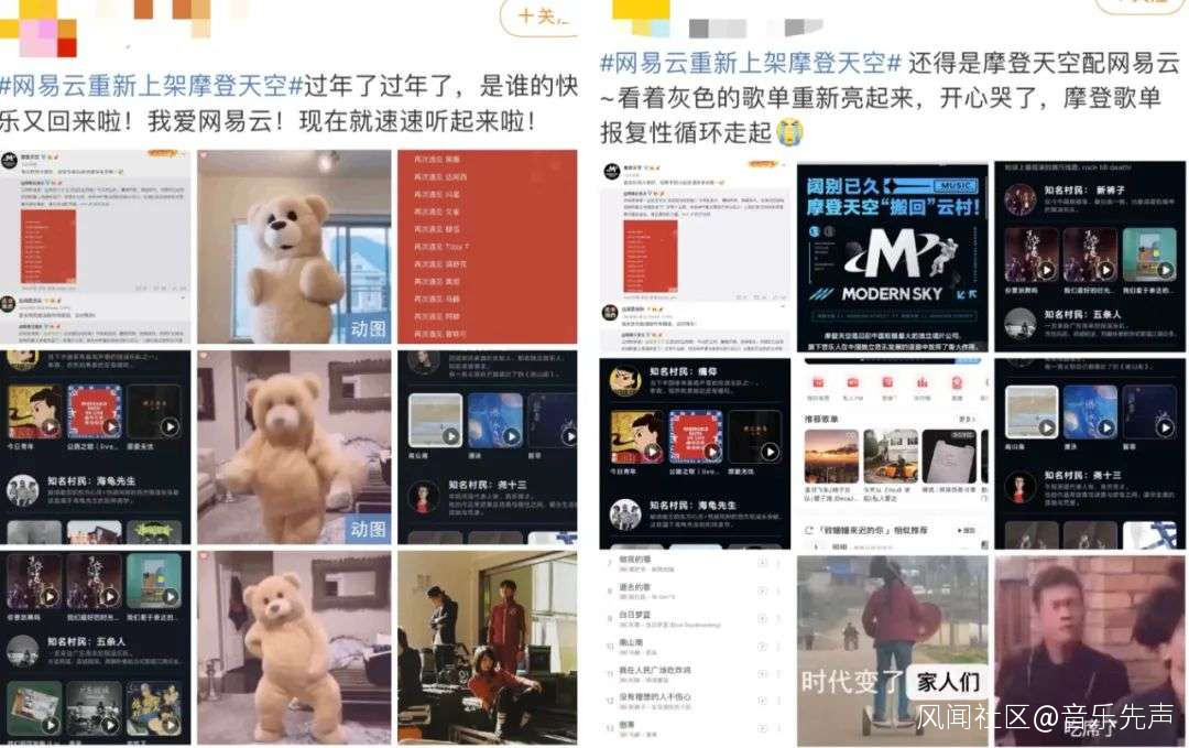 當然,我們也留意到,在摩登天空迴歸雲村後,很多網友都在評論區、社交媒體上呼籲其他版權的迴歸。這也説明,摩登天空的迴歸只是版權開放的“第一步”,很多頭部唱片公司的版權還沒有迴歸,可見政策落地仍存在不小阻力。