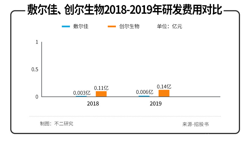 對比醫用面膜同業,創爾生物2018年、2019年及2020年上半年,研發投入佔比分別為5.13%、4.70%、5.16%,對應研發費用0.11億元、0.14億元、0.06億元。