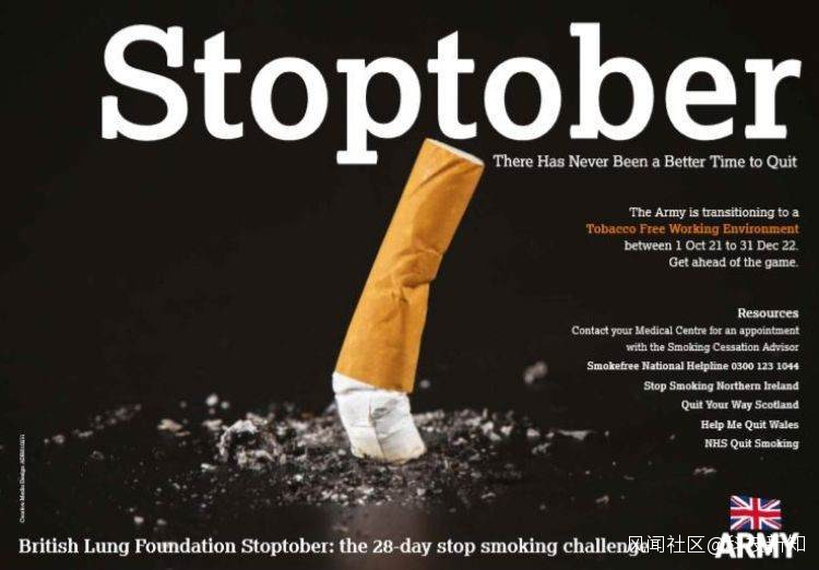 (英國陸軍10月“戒煙月”發佈的宣傳海報)
