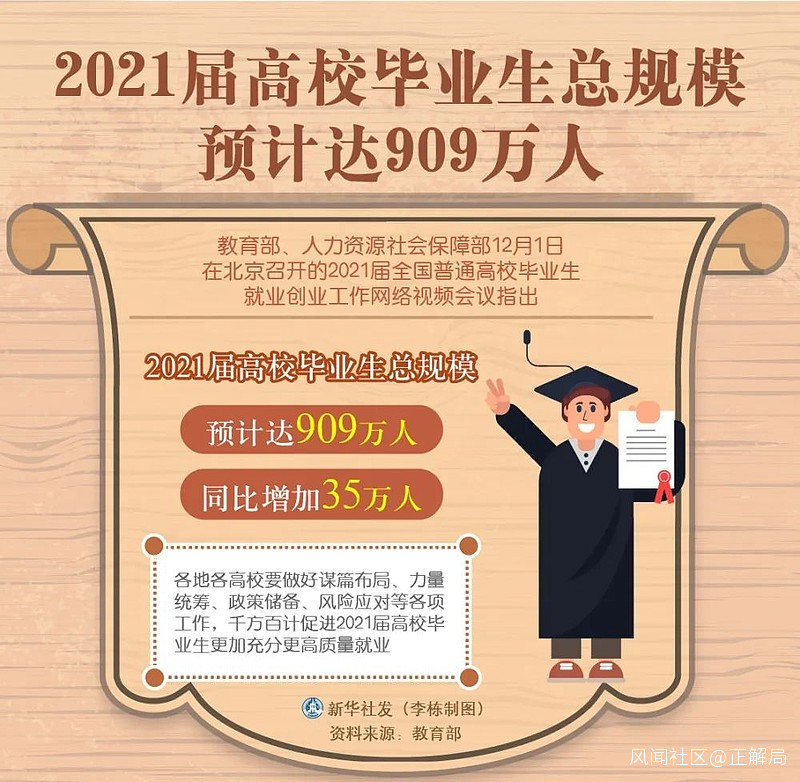 根據教育部公佈的數據顯示:2021屆高校畢業生總規模高達909萬人,同比增加35萬人,再創歷史新高。