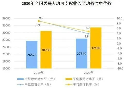2020年全國人均可支配收入中位數是27540元,意味着你如果能年收入超過27000元,就已經妥妥超過一半國人的收入水平。