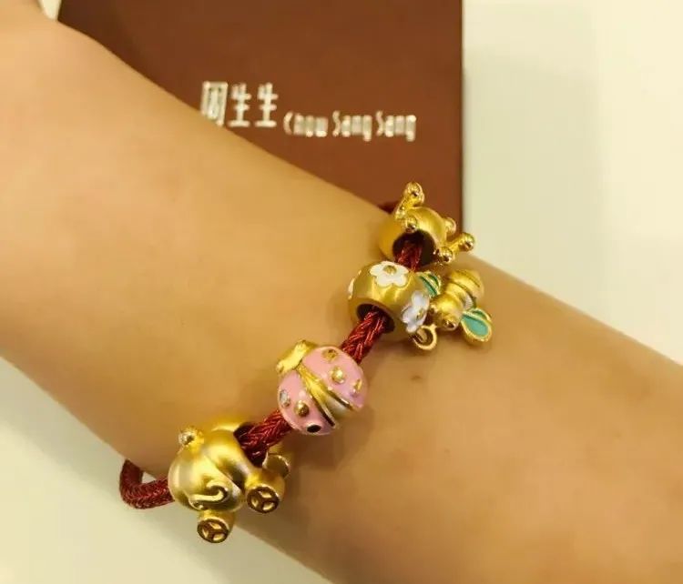 相比之下,隔壁家的周大福、周生生等珠寶商也有皮繩串珠的手鍊。不僅手鍊白送,串珠還是用黃金制珠,比起潘多拉的銀珠子,K金珠子,甚至是銅珠子值多了。