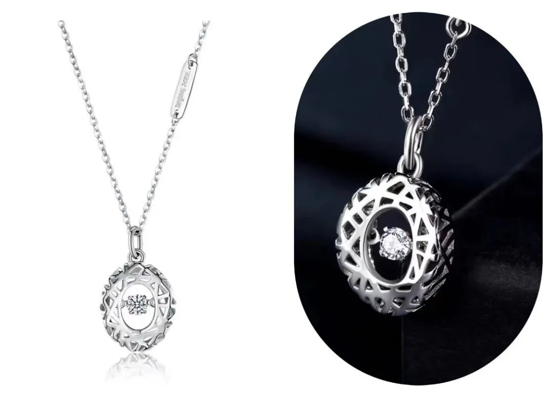 還有以北京冬奧開閉幕式場地——鳥巢為靈感製作的項鍊吊墜,也多了幾分冰靈的質感。