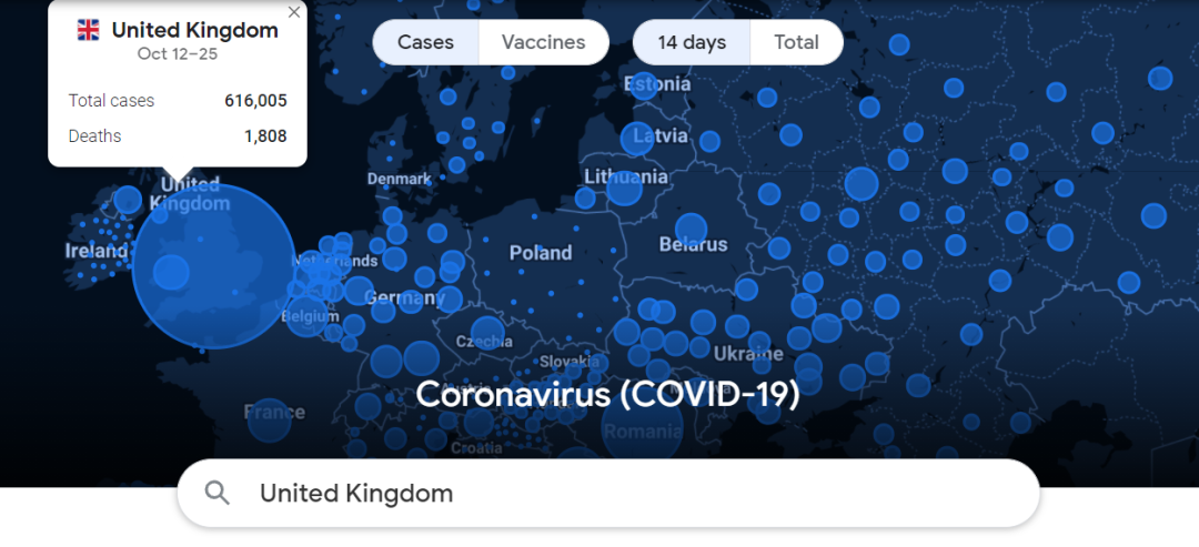 ● 過去兩週英國成為歐洲疫情新“震中” / 網頁截圖
