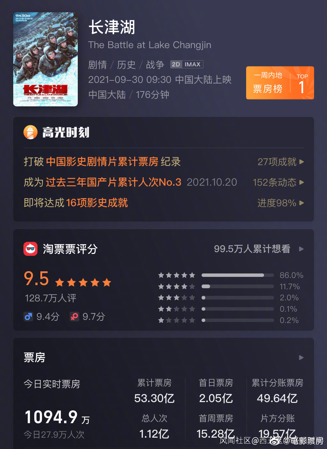《長津湖》上映快一個月了,各平台的評分也基本穩定了,其中貓眼評分9.5分,淘票票評分9.5,豆瓣評分7.4。