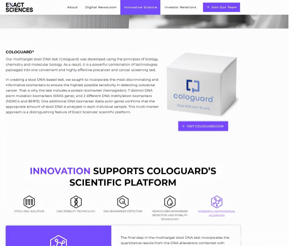 讓這個標籤格外使人信服的是,據康立明生物官網信息,這位高管“曾任美國癌症篩查龍頭精密科學的研發總監”,並“領導開發出全球首款糞便基因檢測產品Cologuard”。而Cologuard是精密科學旗下的明星產品,是美國FDA首個,也是迄今唯一獲得FDA批准的腸癌篩查產品。