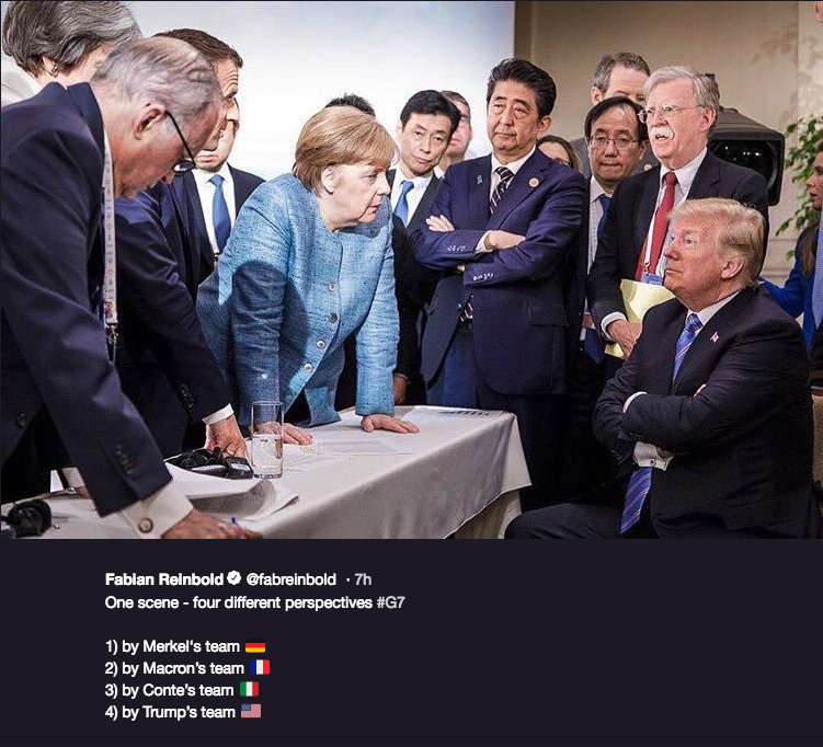 相信不少人對默克爾的最後印象可能會停留在G7峯會這張“名畫”之上。
