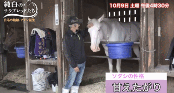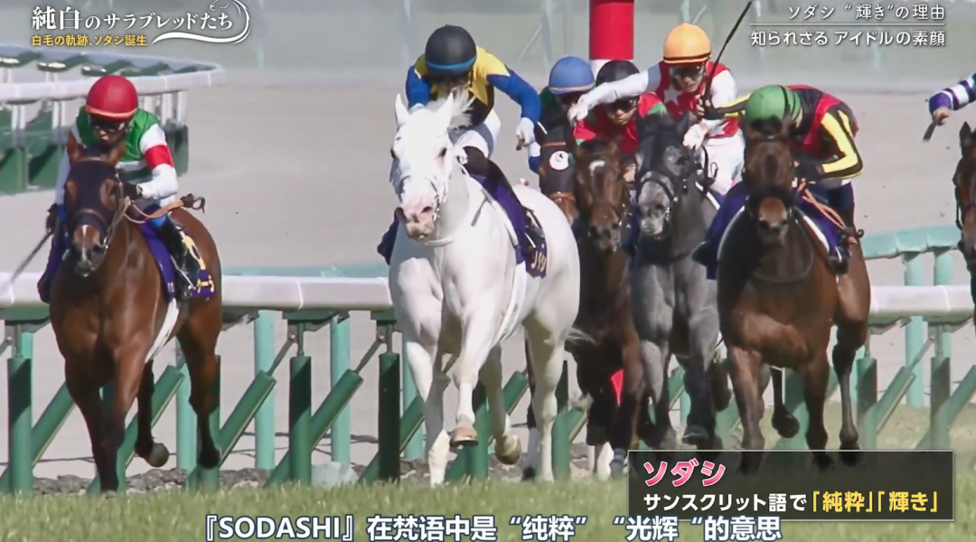 這匹小白馬的大名叫ソダシ,來源於梵文sodashi,意思是“純粹,光輝”,目前中文名暫譯作**「純白光輝」或「純潔光輝」或「白水鑑心」**(迄今為止香港馬會還沒有給正式中文譯名)