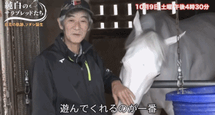 *照料蘇妲己的飼養員今浪隆利,此前也是照料黃金船的飼養員(老爺子表示被阿船折騰過後現在對付這些馬崽子極其拿手:“sodashi很敏感不好對付?和那傢伙比起來還好啦”)