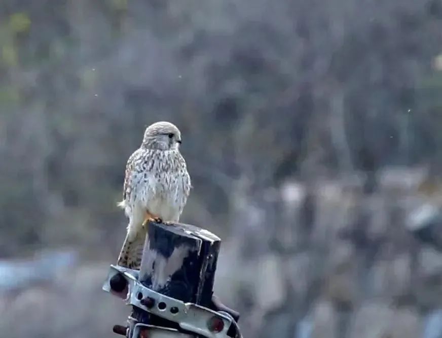 我們在後山入口處停下來拍照時,發現一隻紅隼在電線杆上吃螳螂。