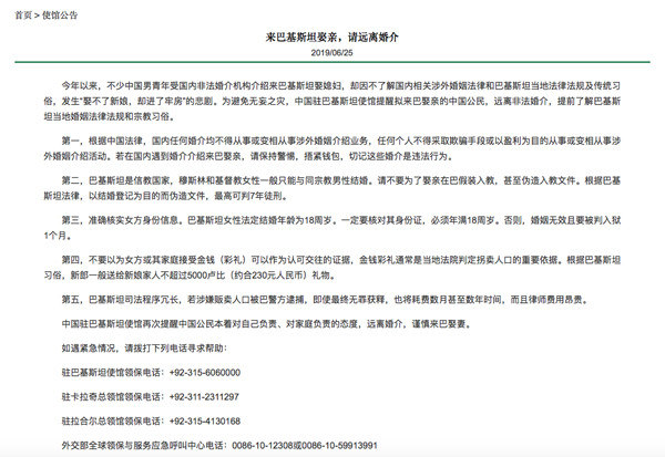 北京報紙**《新京報》2019年11月25日那一期上的新聞報道《跨國婚姻騙局:帶不回的外國新娘》,以及“澎湃”新聞網上的《去巴基斯坦娶親的男人們》**都報道了這方面的情況(後者具體的源地址是:https://www.thepaper.cn/newsDetail_forward_5021320;“澎湃”新聞網跟《文匯報》、《新民晚報》一樣,都是“上海報業集團”旗下的媒體),現將後者的正文直接貼在下面: