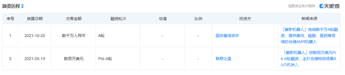· 第一輪融資為2021年5月19日由聯想之星投資的數百萬美元Pre-A輪融資,該輪融資主要用於新產品的研發、市場拓展等。