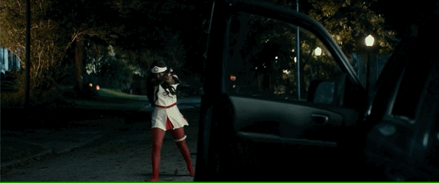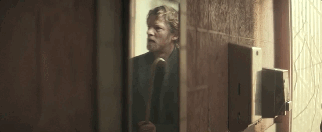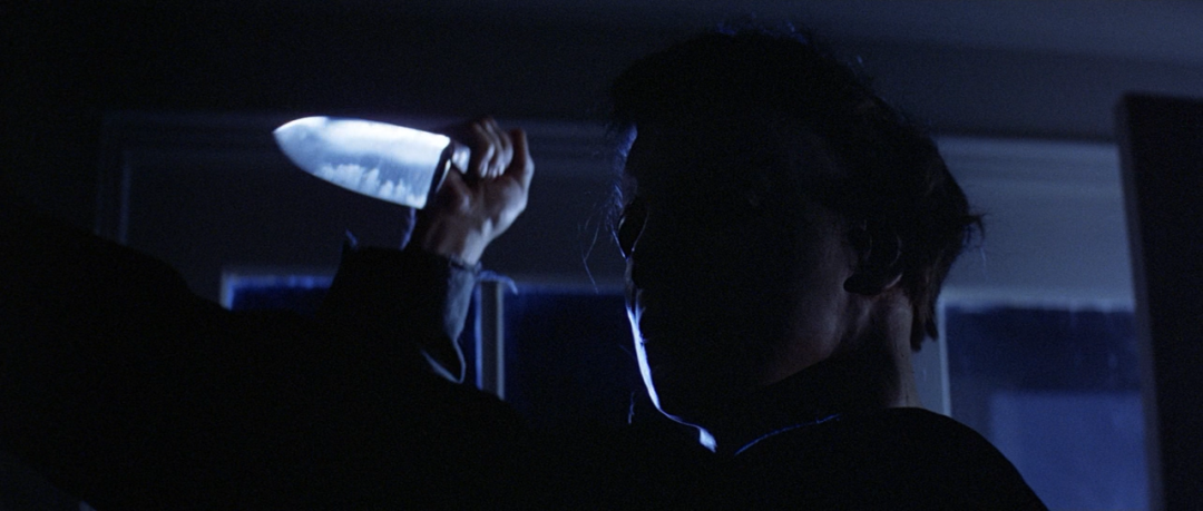 一分鐘完事,男友離開後,姐姐坐在梳妝枱前,回頭卻發現邁克爾提刀站在她身後。
