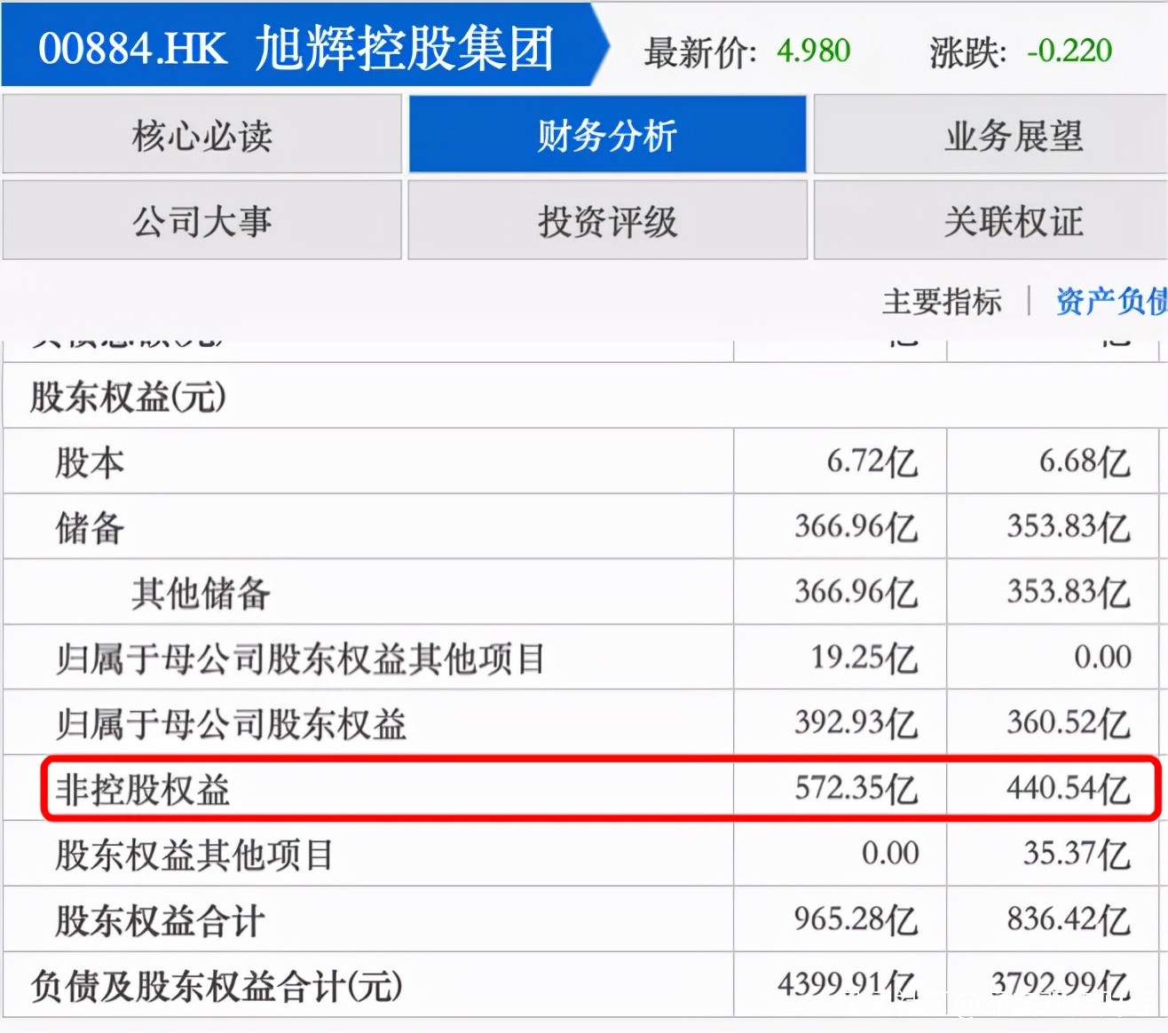 2020年,其少數股東權益首度超過母公司股東權益,達到440.54億元,佔全部股東權益比例達到53%。