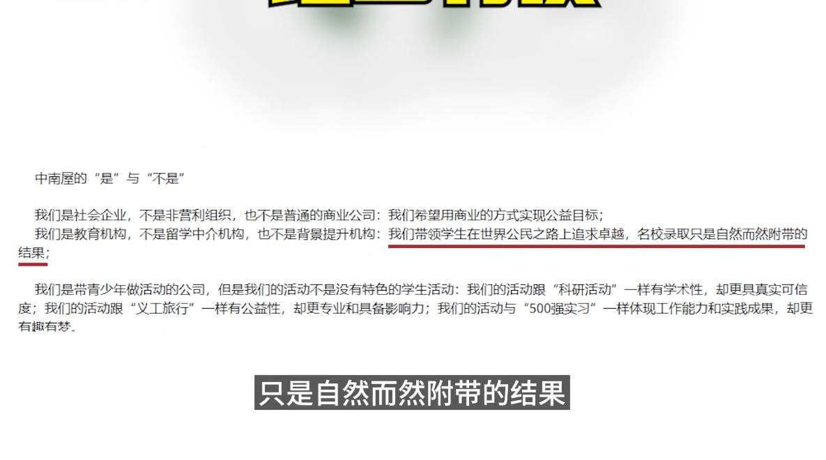 “中南屋”的官網聲稱,“我們帶領學生在成為世界公民的道路上追求卓越,名校錄取只是自然而然的結果”。