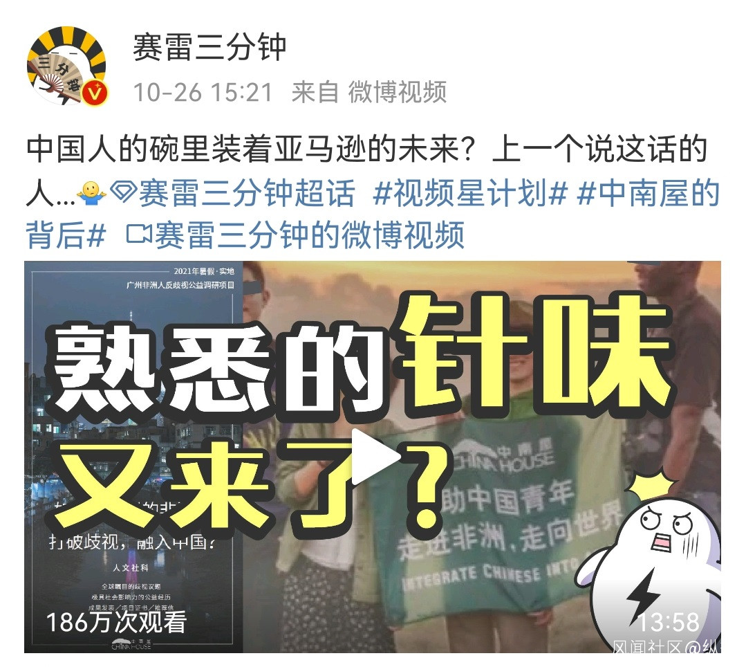 不少網友指出,“中南屋”打着社會調查的名義,先入為主地給中國人扣上了歧視非裔的帽子,別有用心、動機不純。