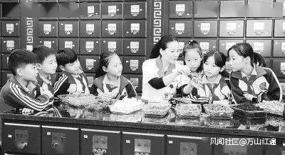 江西省新餘市渝水區市場監管局聯合通濟社區組織渝水八小學生走進大藥房,開展“辨識中藥材,感受中醫藥文化魅力”課外主題實踐活動。廖海金攝/光明圖片