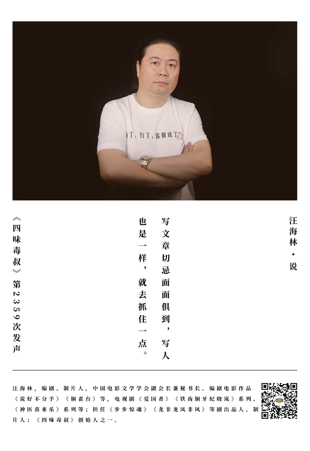 **汪海林:**對,我們寫文章也是這樣,切忌面面俱到,寫人也是這樣,就是抓住一點。