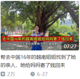 在B站上,就有一些來自越南,主要拍攝跨國尋親內容的UP主。他們受那些遠嫁中國、與家人失聯幾年甚至20年的越南新娘委託,靠着隻言片語、碎片化的記憶,去尋找物是人非的故鄉與親人,重新建立起了聯繫。