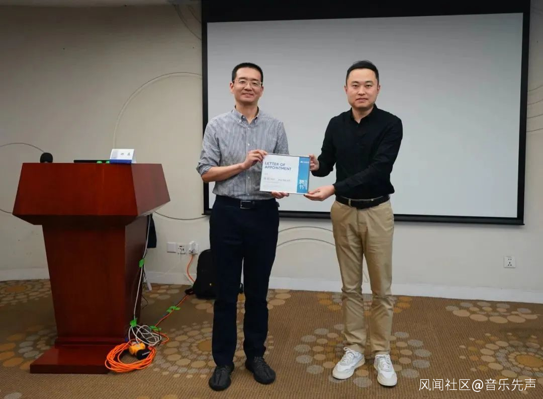 QQ音樂業務線技術副總裁周文江(圖右)為西北工業大學人工智能領域專家謝磊(圖左)頒發聘任證書