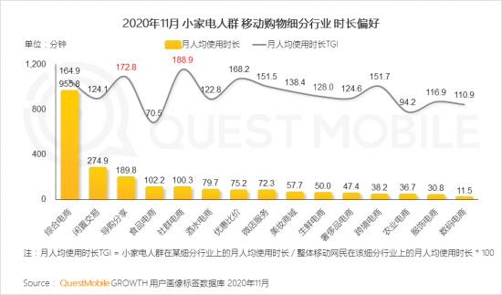 QuestMobile《2020小家電行業品牌營銷洞察報告》顯示,在App端使用時長上,小家電人羣在閒置交易類應用的使用時長,已經僅次於傳統綜合電商類應用。