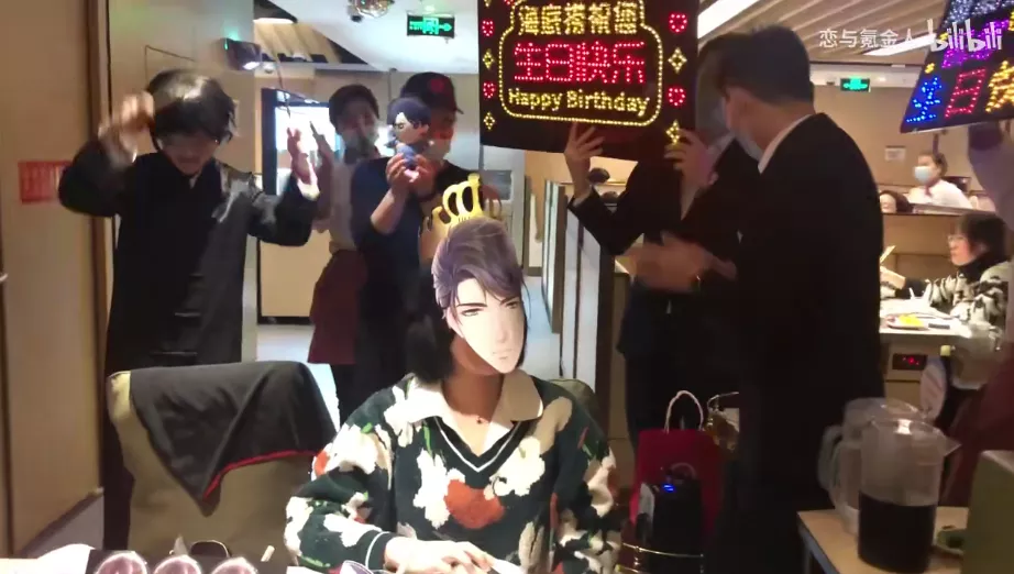 對待二三次元人物完全相同的服務精神值得敬佩,除了標準的生日慶祝,紙片人還能享受到更多的增值服務,比如説請來他的朋友一起慶祝生日,即使沒有辦法現世也沒有關係,只要準備好面具,自然就有了參與感。