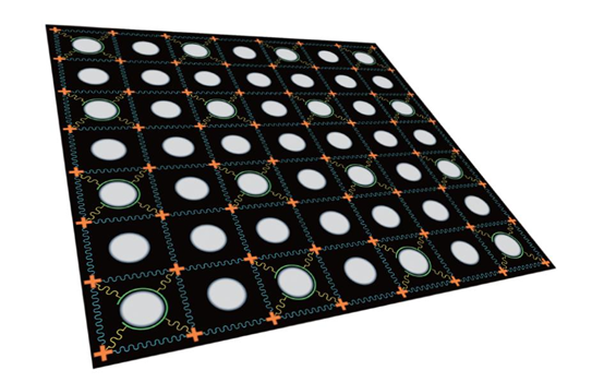 祖沖之號的二維超導量子比特芯片示意圖,每個橘色十字代表一個量子比特