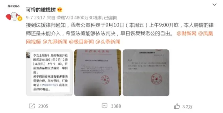 昨日,貨拉拉跳車案司機周陽春妻子李某平發微博稱,周陽春已提起上訴,期望長沙中院查清事實,還丈夫清白。
