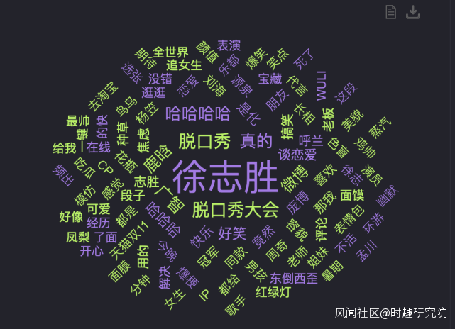當網友們談及徐志勝時,“哈哈哈哈”、“廣智”、“好笑”等詞較多,這些大多數來自於網友們對於志勝段子和本人的回應。