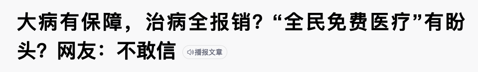 那麼關於全民免費醫療方面,這兩天國家醫保局也回應了相關政協委員提出的“加速實現全民免費醫療”的提案。