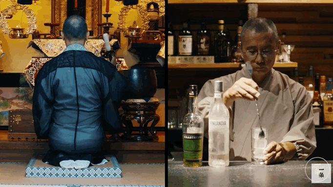 酒吧裏的員工白天在寺廟中唸經,一到晚上,就來小酒吧裏為客人宣揚佛法。