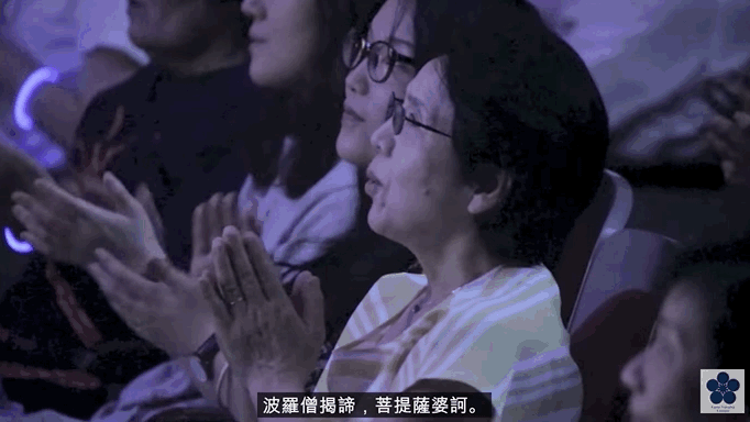有低着頭雙手合十的,還有一邊在打拍子、一邊跟着一起誦經的。