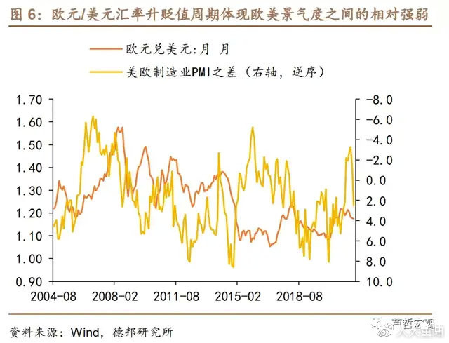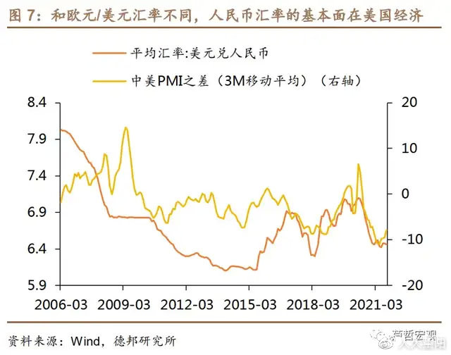因此與歐元匯率決定和慣常的認知並不完全相同,人民幣對美元匯率的基本面是美國經濟,其基本傳導鏈條是:美國經濟復甦推動對華進口增加→增加中國製造業淨出口需求→淨出口擴張經常貿易順差→推動結匯需求增加→人民幣匯率趨於升值。